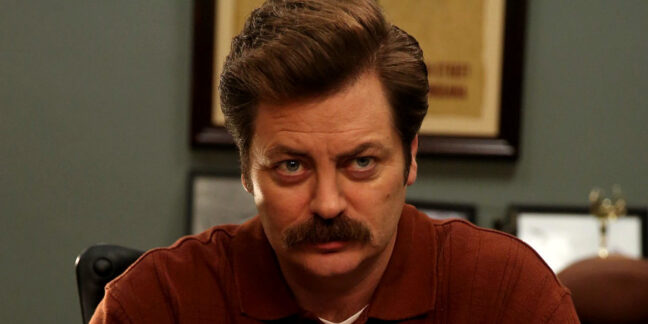 Av alla de underbart knasiga, hjärtevärmande charmpellar som befolkat Pawnee i ”Parks and Recreation” är det Ron Swanson som lindat sina baconskivor tajtast runt denna TV-redaktörs inre organ.