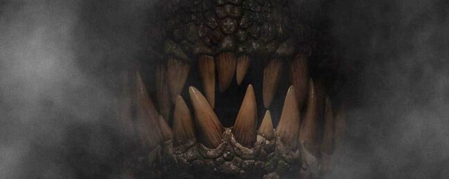 Regissören Colin Trevorrow visar upp den omtalade dinosaurien med en tandeggande bild.