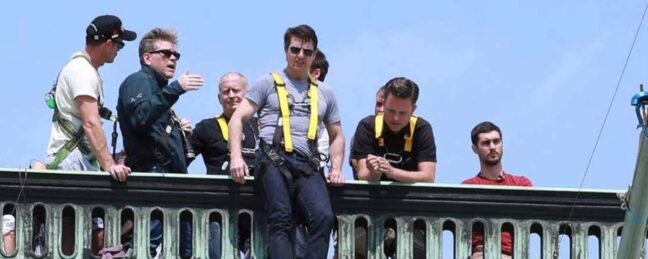Tom Cruise började inspelningsdagen med att klättra upp på Operahusets tak i Wien.
