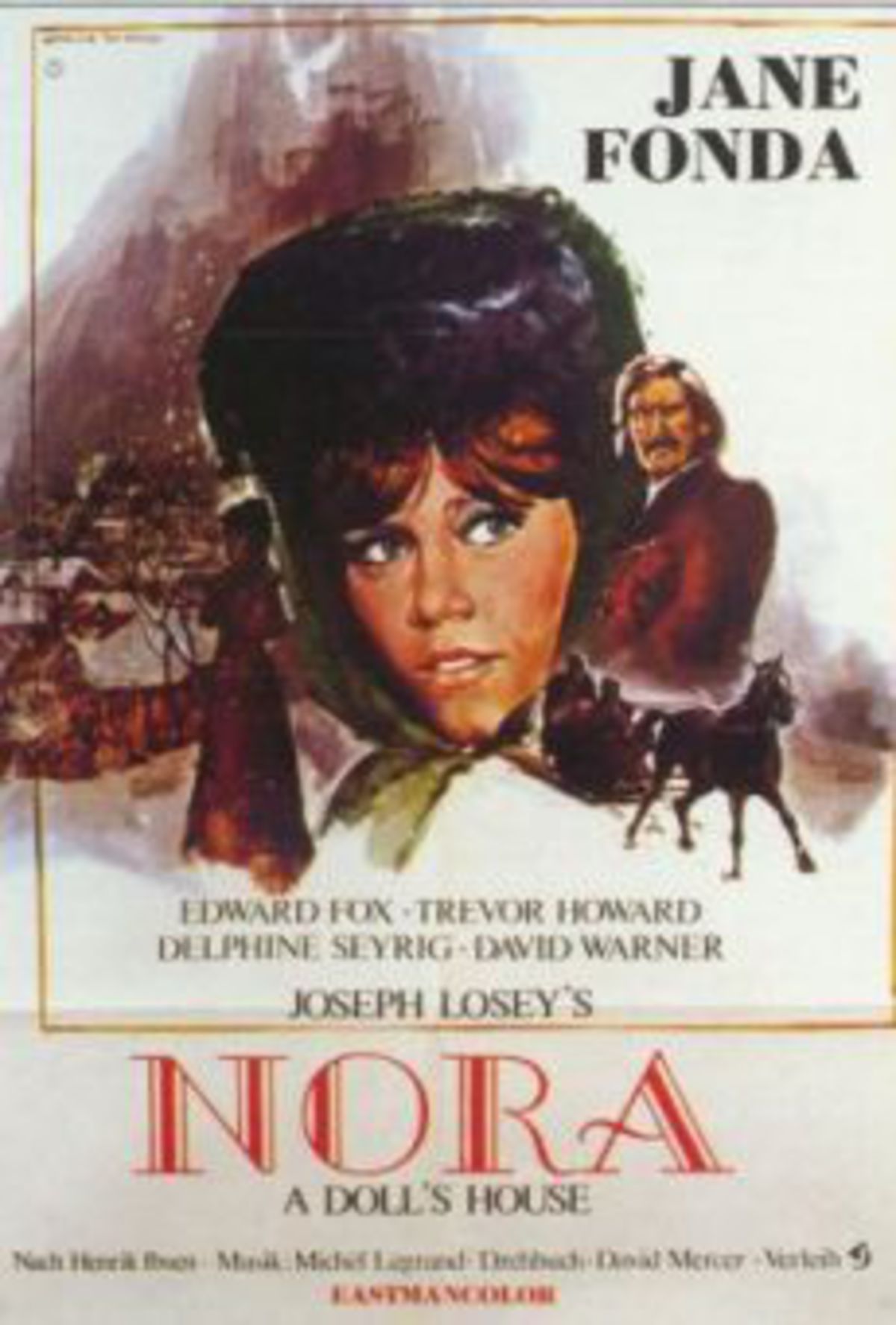 Nora i Joseph Loseys version av Ibsens pjäs, där många scener förlagts utomhus.
