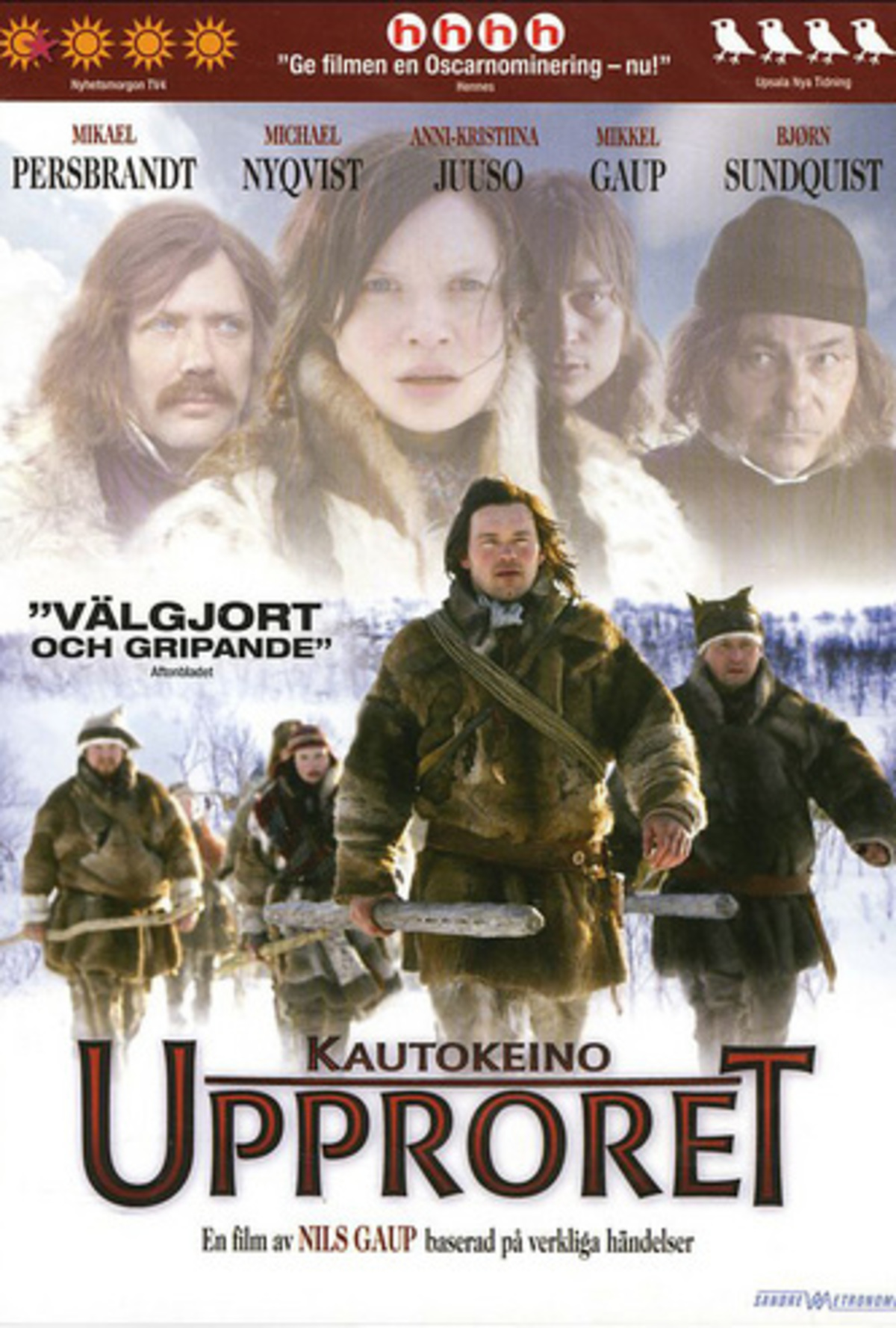 I ”Kautokeino – Upproret” finns nyskapande landskapsporträtt och sorgliga människoöden, mitt i 1850-talets samiska vildmark. Trots omotiverade svenska superstjärnor i flera av rollerna är filmen grymt underhållande, både som religiöst drama och som häftig thriller.