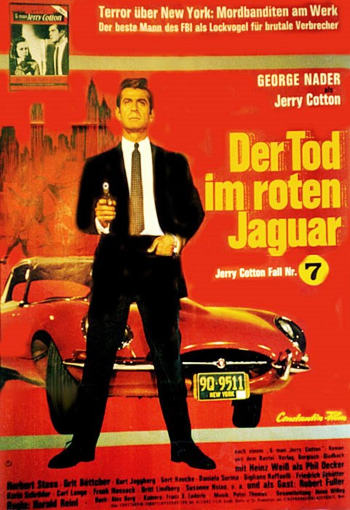 George Nader i huvudrollen i en av filmerna i serien om specialagent Jerry Cotton, som ofta kallas in av FBI vid svåra fall.