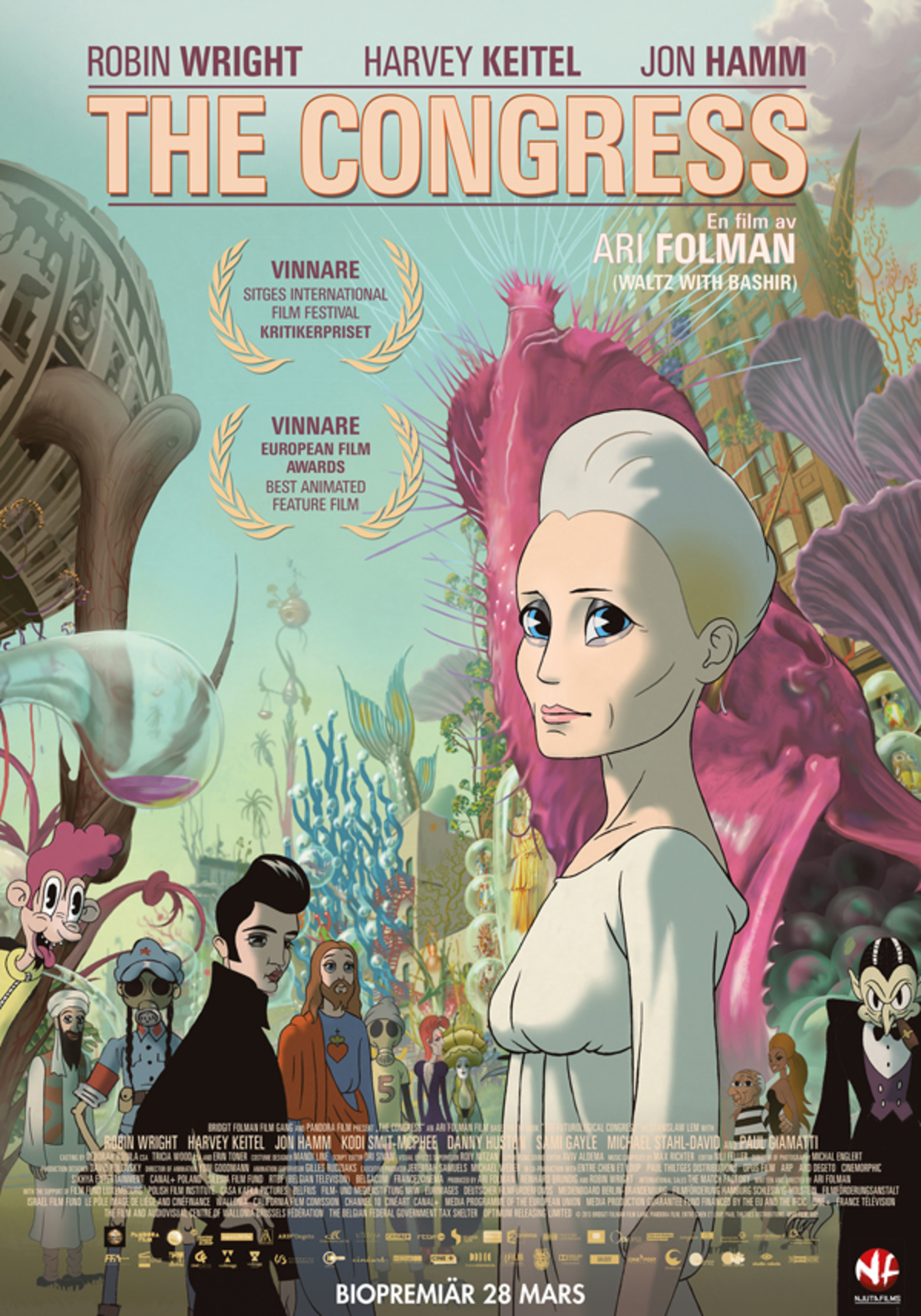 ”Waltz with Bashir”-regissören Ari Folmans nya är ett svårsmält, litet konststycke som inleds som en tänkvärd Hollywood-satir innan den övergår i en animerad, flummig andra halva. Trots en del poänger och minnesvärda sekvenser förblir ”The Congress” aningen pretentiös och för lång.