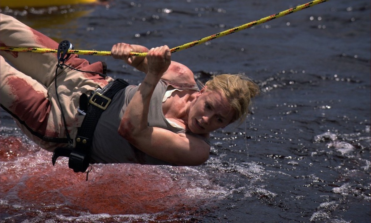 Lagom till en småstads sommarlov och stora strandfest öppnas ett skrev på sjöbotten och släpper lös ett jättestim av förhistoriska pirayor! Ungefär vad du kan förvänta dig av när blodutgjutaren Alexandra Aja (”The Hills Have Eyes”) gör en nyinspelning av Joe Dantes charmiga B-filmsparodi ”Piraya” (1978). Upplägget är exploitationfilm med mycket naket men framför allt ett opretentiöst frossande i slafsiga splattereffekter. Den typen av film där en speciellt hungrig fisk rapar upp en avbiten penis!
