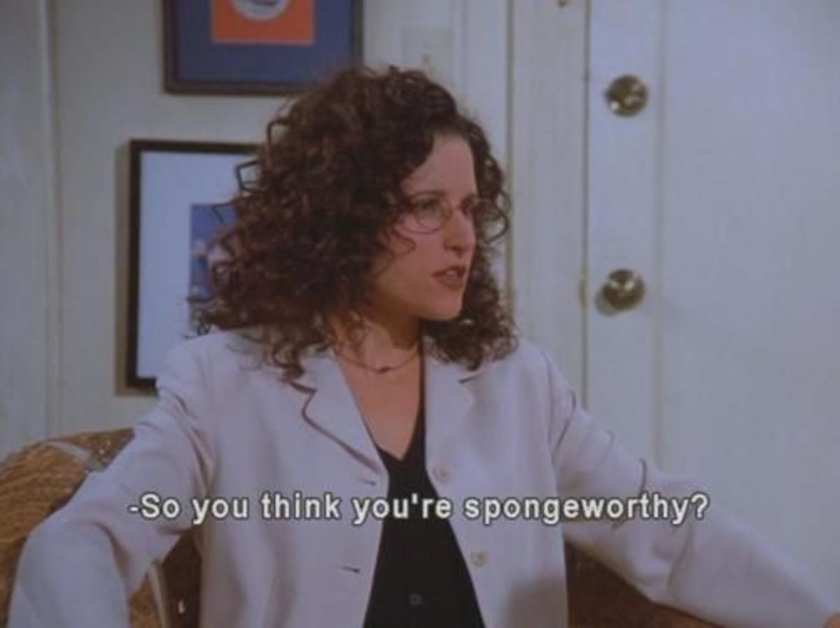 När Elaines favoritpreventinmedel, the Today Sponge, slutar tillverkas försvårar det hennes val av sexpartners. Om personer som hon tidigare inte hade tvekat att gå till sängs med måste hon nu fråga sig själv ”är han värdig en sponge?”