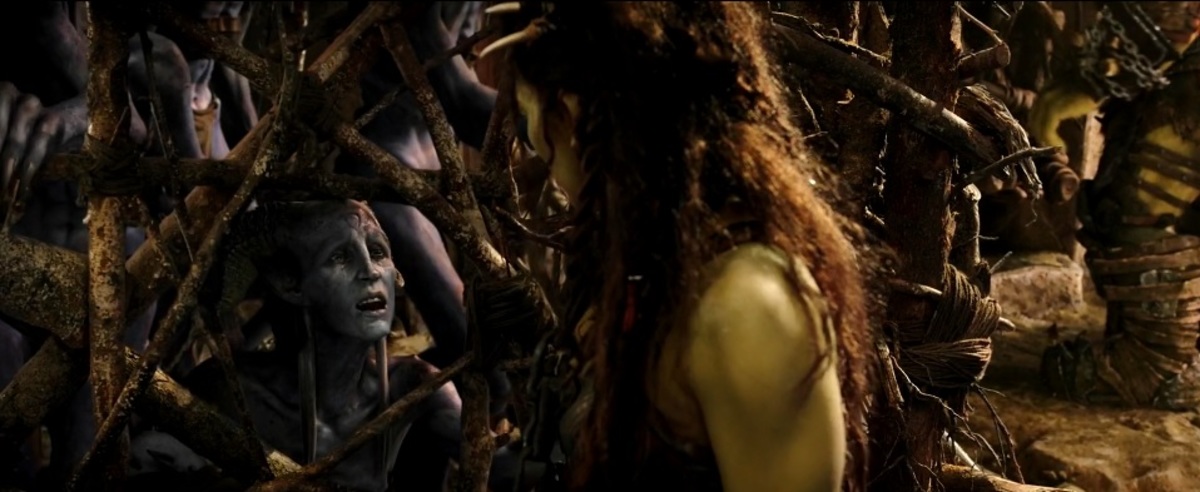 Det förklaras aldrig i filmen, men varelserna som Gul’Dan ”skördar” tillhör den framstående rasen draenei. De introducerades som spelbar ras i den allra första ”World of Warcraft”-expansionen, ”The Burning Crusade”. Vad Garona, som syns ovan, själv inte vet, är att hon faktiskt är en hybrid mellan en orc och en draenei, och inte mellan en orc och en människa. Kanske är det därför som just hon blir tillbedd om hjälp i scenen ovan.