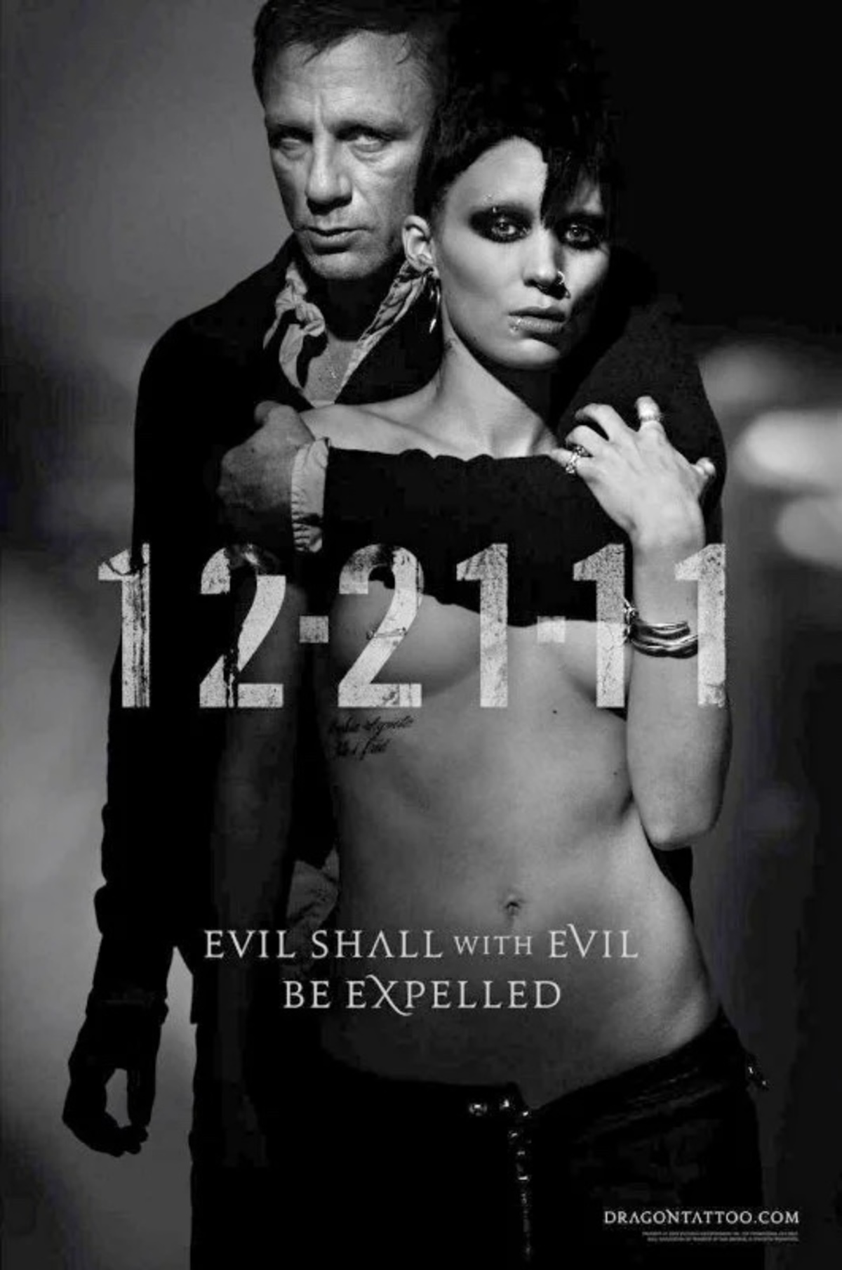 Därför tyckte många att det var både underligt och i dålig smak att på affischen till David Finchers efterlängtade filmatisering presentera Rooney Mara som karaktären halvnaken omslingrad av sin manliga, påklädda motspelare, Daniel Craig. Mara försvarade det med att den bara var en teaser och dubbelmoralen i att få hade reagerat om hon gjort något våldsamt.