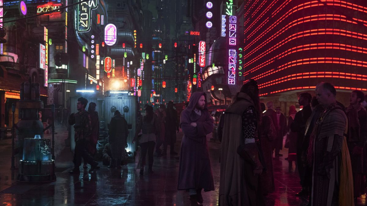 11. Vi befinner oss på en ny planet, Daiyu! Tack och lov, för likt Anakin Skywalker är jag oerhört trött på att titta på sand. Även främmande världars flygplatser har en stor digital tavla med ankommande och avgående farkoster. Visuellt har planeten har lite “rejv när berusningen börjar avta”-känsla. Vi får se en Stormtrooper som tigger (Temuera Morrison som senast sågs i “The Book of Boba Fett” dyker traditionsenligt upp som en av klonerna), och en ung tjej försöker sälja krydda från Kessel. (Om ni minns “Solo: A Star Wars Story” var det en grej där.)