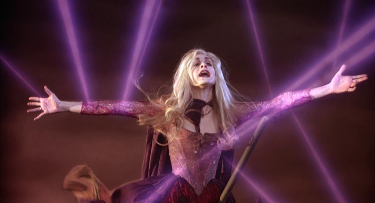 20. Men lite eld dödar inte häxorna, de kommer tillbaka, de kidnappar filmens obligatoriska 90-talsmobbare, tillfångatar Dani (är vi helt övertygade om att vi vill ha tillbaks henne?), och kallar till sig alla stadens barn med hjälp av sång. Sången är inte i närheten av att vara lika fabulös som ”I put a spell on you.” Häxorna hade kunnat suga livsenergin ur vilket som helst av alla dessa barn för att överleva, men det har blivit personligt eftersom Dani är ett sånt ettrigt fanskap. Och hon kallade Winifred ful, vilket som vi alla vet är det absolut värsta man kan kalla en kvinna, och det måste bestraffas.