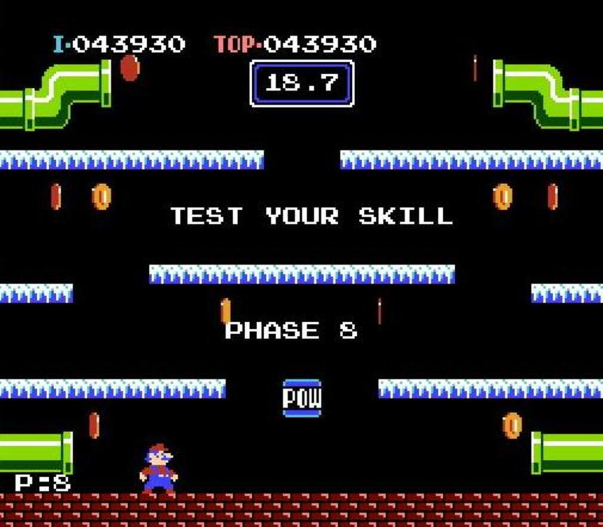 Om du har spelat något av Marios moderna äventyr och vill veta var allting började kommer du att bli gruvligt besviken på det simpla arkadspelet Mario Bros. Inom loppet av några sekunder har du sett allt som finns att se och sedan är det bara en fråga om hur länge du orkar trilskas med den såsiga kontrollen. Om lusten skulle falla på (vilket den ytterst sällan gör) finns spelet redan gömt i det på alla vis överlägsna Super Mario Bros. 3.