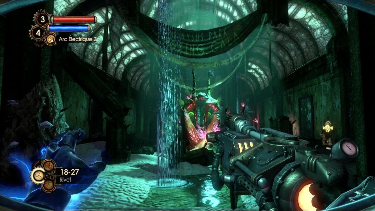 Det första “Bioshock” har ett av de mest iögonfallande miljöerna i spelvärlden. En stad vid namn Rapture som är byggt på havets botten för att fly undan stat, kyrka och befolkning. Men någonting har gått fel, stadens invånare har via genmodifiering blivit både galna och enkelspåriga.