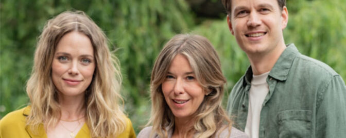 Erika Wasserman i mitten, tillsammans med sina huvudrollsinnehavare Katia Winter och Jesper Zuschlag.