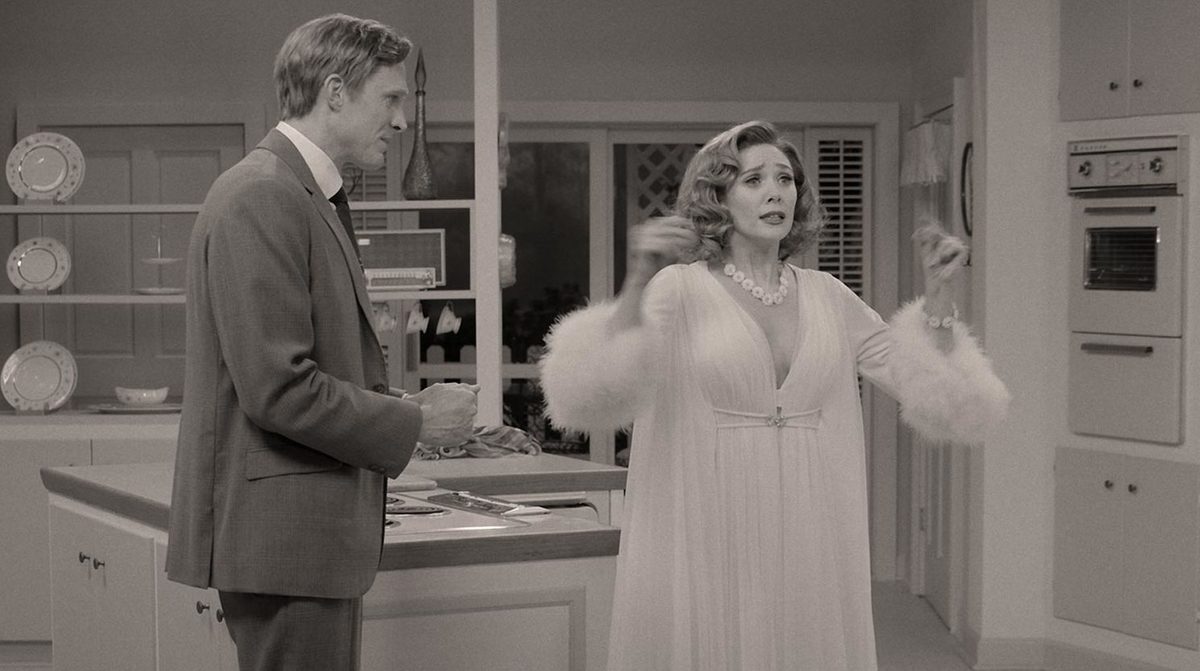 ”WandaVision” har däremot ett väldigt annorlunda upplägg än allt annat vi har fått se från Marvel Studios i deras tidigare MCU-filmer. De inledande avsnitten är strukturerade som olika sitcoms från 50, 60, 70, 80 och 90-talet… men med en känsla av att allt inte riktigt står rätt till. Men med tanke på att man har lagt 150 miljoner dollar på de nio avsnitten, så lär det finnas en hel del action längre fram under säsongen att se fram emot. Redan i det tredje avsnittet övergår vi i alla fall till färg-tv, när 70-talets sitcomformat avverkas!