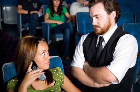 Börja längst bak i salen och se hur lång tid det tar dig att nå duken från det att filmen har börjat. Du kommer möta hinder som trånga utrymme, massa fötter och en hel del klagomål. Men väl framme är det du som är den nöjda!