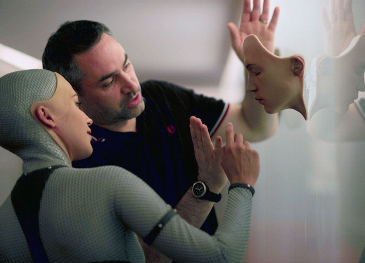 Alicia Vikander och Alex Garland under inspelningarna av ”Ex Machina”.