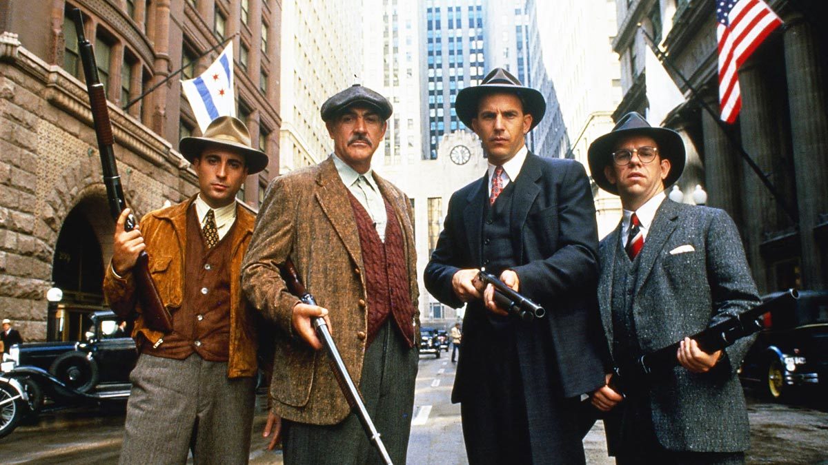 Det är förbudstider i USA och Chicago är i den skoningslöse gangstern Al Capones våld. Bara en grupp med hårdförda män som kräver att man spottar i glaset är karlar nog för att stoppa honom. Gänget bestående av Kevin Costner, Andy Garcia och, Mr Bond himself, Sean Connery visar verkligen hur manlig vänskap ska se ut i denna mer actionfyllda noirfilm. De lär oss också att man inte ska ta med sig en kniv till en pistolfajt. Favoritscenen är när en döende Connery frågar Costner vad han är beredd att göra för att stoppa Capon vilket visar hur en riktig karl dör med hedern i behåll.
