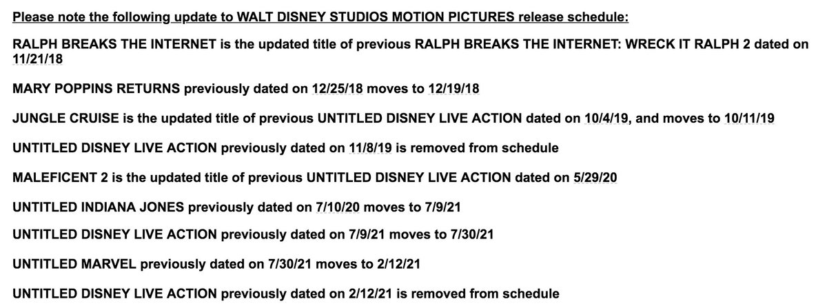 ”Untitled Disney Live Action II” och ”Untitled Disney Live Action III” är borttagna från releaseschemat.