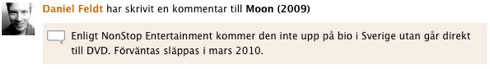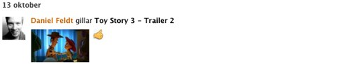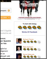 En annan riktigt användarbar funktion med vänner på MovieZine är att du ser direkt på filmsidan vad dina vänner tyckte om den filmen. Går du t ex till ”Inglourious Basterds”-sidan så ser du vad dina MovieZine-vänner satt för betyg på den.