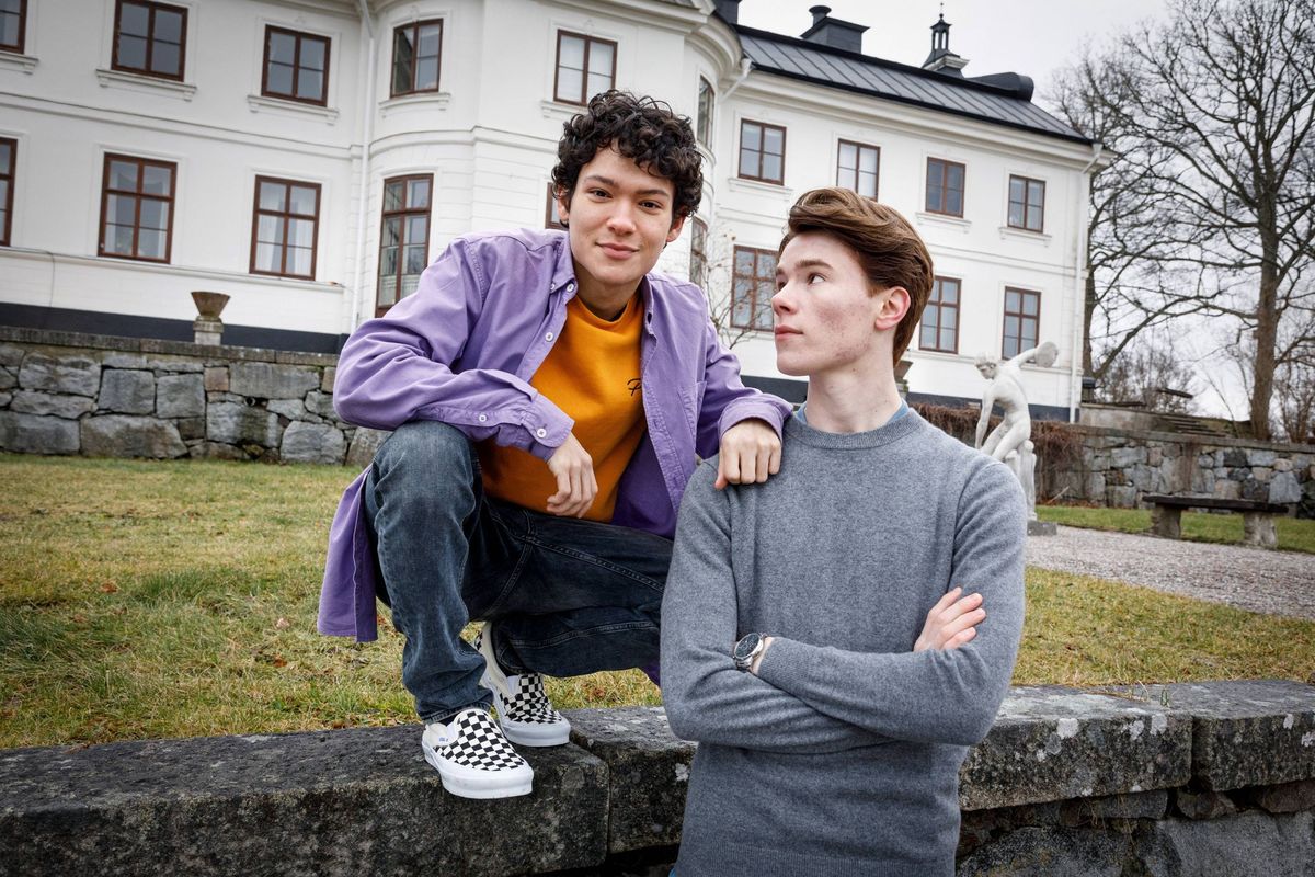 Edvin Ryding med Omar Rudberg på inspelningen av andra säsongen av ”Young Royals”.