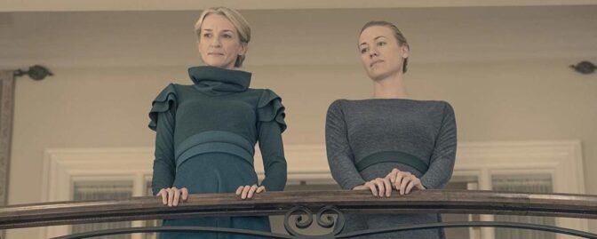 ”Ni är hela mänsklighetens gissel”, säger anförare Waterford om kvinnosläktet efter att Offred återgäldat hans örfil. Senare får vi se hur fruarna gått samman för att presentera ett förslag inför det helmanliga rådet: låt barnen – döttrar såväl som söner – studera bibeln. Serena förstärker sitt argument genom att ta upp den döda flickan Edens hemliga bibel och läsa högt ur den. Det kostar henne ett finger.