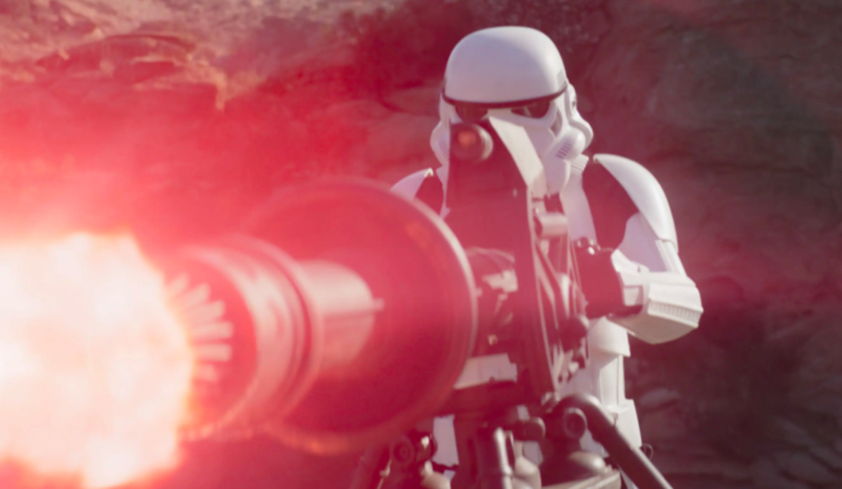 15. Rödtröjor är en Star Trek-grej som utmärker bikaraktärer det är bäst att inte fästa sig för mycket vid då de snart kommer att dö. Den röda axelflärp utmärker här gruppledaren, och borde således vara den första personen en siktar på om en är en person som aldrig missar. Trots att det är en roll med repliker hittar jag inte skådespelaren någonstans, men det vore typiskt Star Wars att ha en känd skådespelare dold under hjälmen.