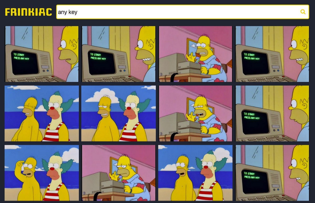 Genom att ange några sökord till Frinkiac, som sidan såklart heter, kan du genast hitta rätt screenshot från de första 15 säsongerna och om det inte räcker till med en bild kan du själv skapa en sekvens med fler bilder ifrån samma avsnitt och göra ditt eget meme, tack vare Allie Young, Paul Kehrer och Sean Schulte. Initiativet skapades ur ett behov som de tre grundarna av sidan hade då de ofta citerade passande Simpsons-uttryck i daglig konversation men hade svårt att hitta klipp eller bilder på Google.