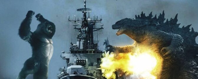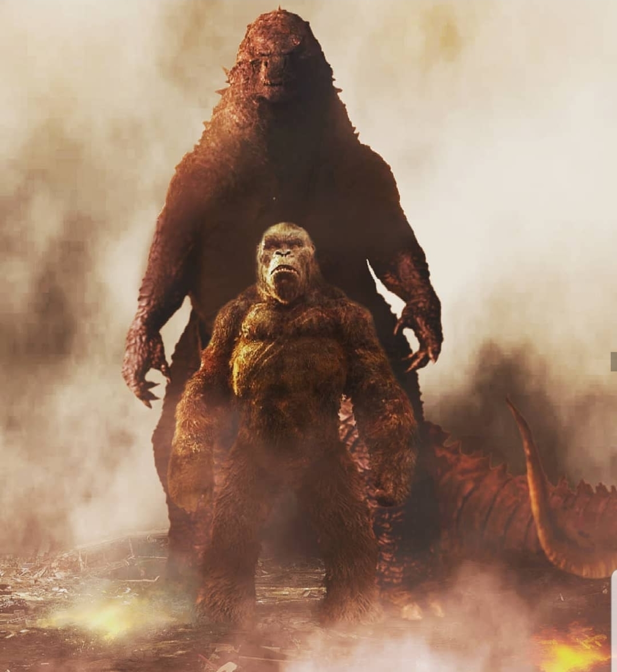 Bilderna kommer från sajten Godzilla-Movies.com och är skapade av en konstnär vid namn Victor MC (se fler på hans Instagram). Det är alltså inget officiellt material utan s.k. fan art. I Monsterverse-filmerna vet vi att Godzilla och Kong är ungefär lika stora, vilket bäddar för en mera jämn fight.