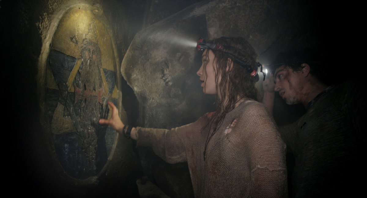 Katakomberna har en parallell till Dantes Inferno (”Den gudomliga komedin” 1300-talet) och dess nio kretsar i helvetet. Märkliga och skrämmande händelser får teamet att pröva sitt psyke när deras inre demoner och ångest förföljer dem. Hastiga ”jump scares” existerar knappt, istället får vi 90 minuters nästan ständigt obehag som får det att krypa längs med hela ryggraden.
