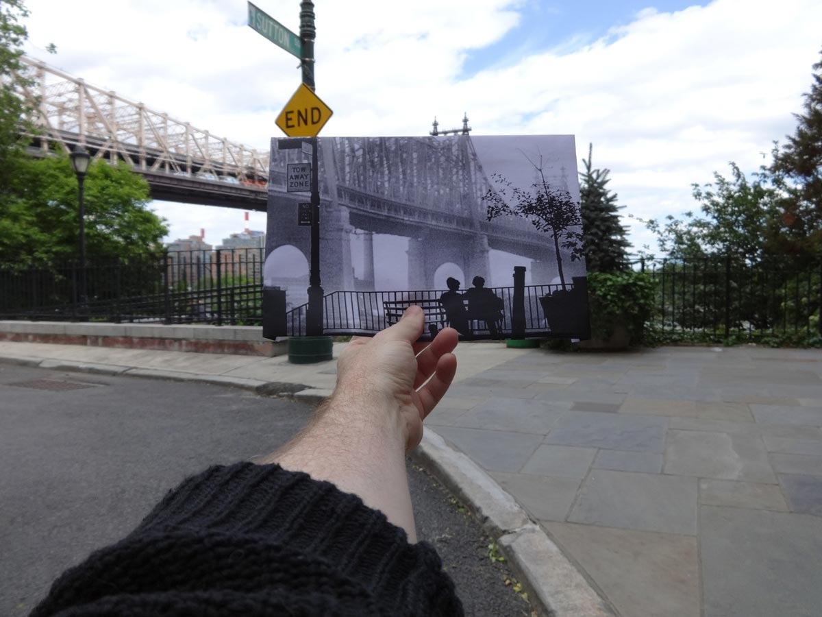 Detta har filmfantasten och fotografen Christopher Moloney tagit fasta på och skapat ett omfattande fotoprojekt. Det går ut på att han integrerar stillbilder i svartvitt av filmer, med nytagna bilder av samma plats. Med en otrolig känsla för perspektiv och vinkel håller han helt enkelt bara upp stillbilden framför kameran och knäpper av. Resultatet är häpnadsväckande.