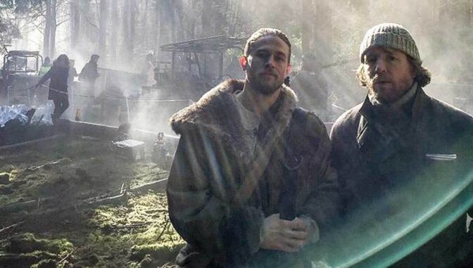 På nedanstående bild ser vi Charlie Hunnam som kung Arthur och regissören Guy Ritchie.