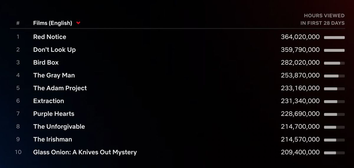 De två andra var actionfilmen ”Red Notice” och undergångskomedin ”Don’t Look Up”, båda från 2019.