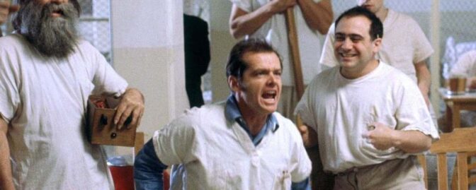 I Milos Formans dramakomedi från 1975 följer vi med till ett dårhus där självaste Jack Nicholson dyker upp och skapar kaos. Hans rollfigur R.P. McMurphy låtsas vara galen och lyckas driva den strikta sköterskan Ratched till vansinne medan han skaffar sig polare bland patienterna. Nicholson vann en Oscar för sin roll, en av totalt 5 tunga priser som filmen knep på 1976 års Oscarsgala, inklusive Bästa film!