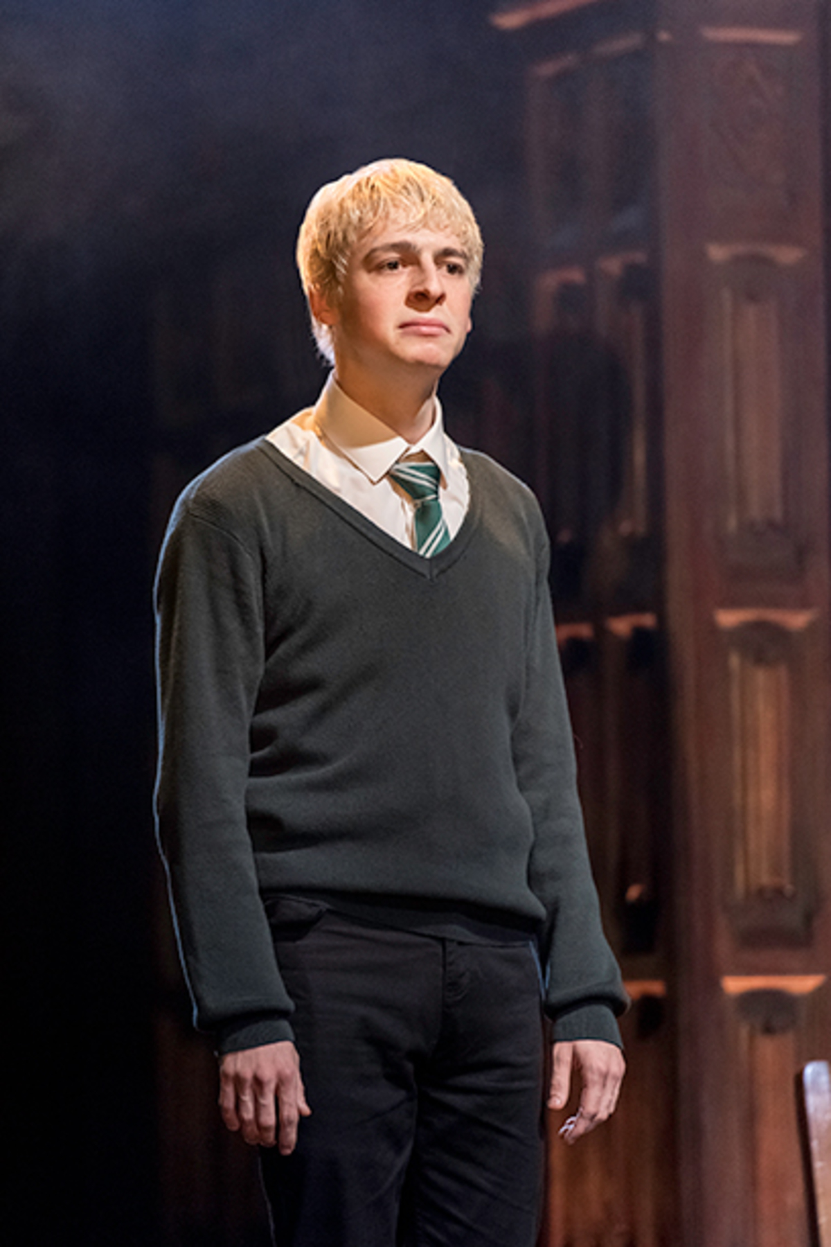 Scorpius iförd sin Slytherin-klädnad.