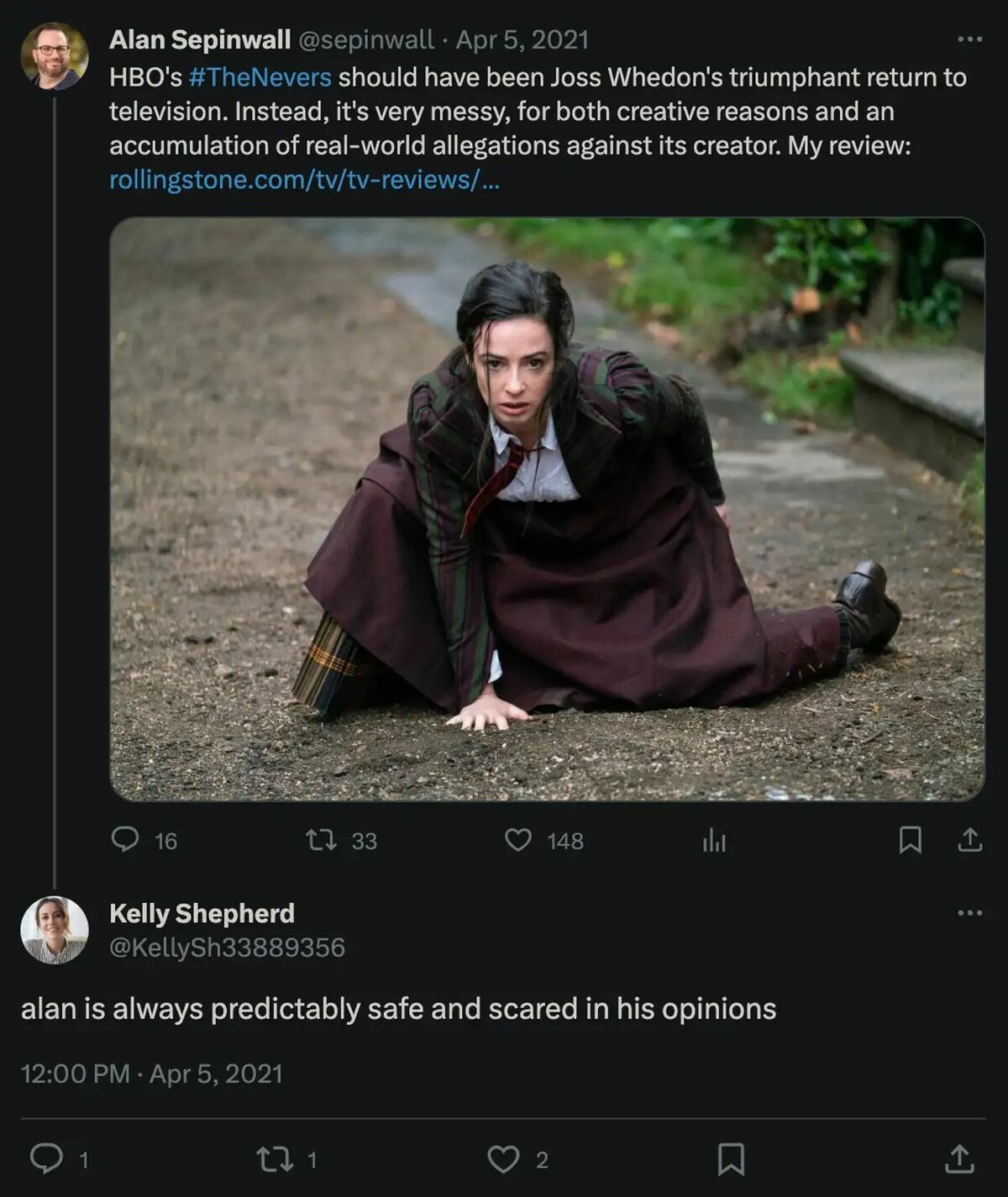 När skribenten Alan Sepinwall recenserade och sågade ”The Nevers”, Joss Whedons kortlivade fantasyserie, ville HBO-chefen sätta honom på plats.