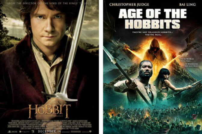 – The Asylum marknadsför sin lågbudgetfilm med den förvirrande lika titeln ”Age of the Hobbits”, för att medvetet rida på populariteten som förknippas med Tolkens romaner och de extraordinärt framgångsrika ”Sagan om Ringen”-trilogin, och Hobbits varumärke (…), skriver MGM och Warner Bros sura advokater i sin stämning som THR tagit del av.
