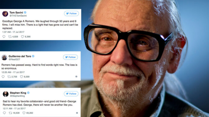 Idag vaknar vi upp till en lite gråare värld. Regissören och filmskaparen George A. Romero har avlidit efter en tids sjukdom. Ända sedan det tragiska beskedet landade har en stor mängd människor tagit till Twitter och Instagram för att uttrycka sin sorg och kärlek för den ikoniske filmskaparen. Här är ett urval: