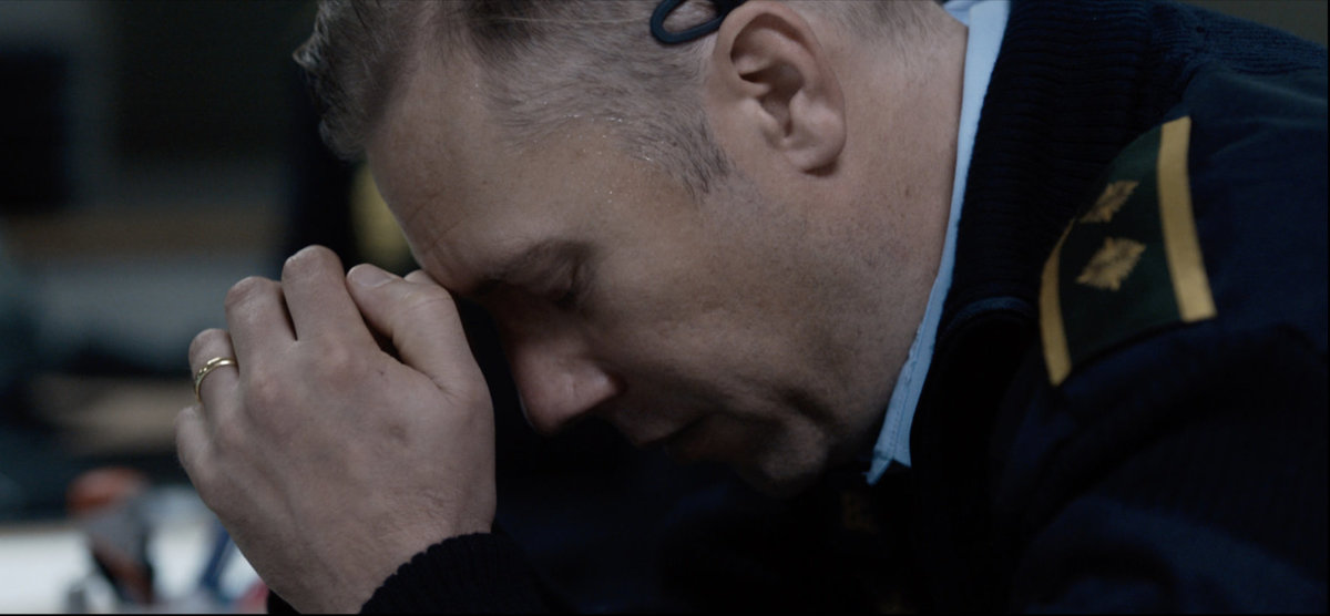 – Jag vill inte spoila för mycket, men man kan säga att det är en polis som man tagit från gatan och blivit satt på kontorstjänst. Det fanns en vibe av det på de larmcentralerna, att vissa inte ville vara där. Det är inte så att de var under rättegång, som i filmen, men det tänder någonting. Det ledde till att vi började intervjua poliser som hade varit i en liknande situation som vår huvudperson. Först kom idén, från idén kom location, på location hittade vi karaktärer. Utifrån det började vi göra intervjuer och sen kom tematiken.