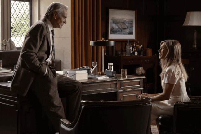 – Vi kan knappt fatta att de här skådespelarna ville vara med i vår serie, säger Aniston. Och Jeremy Irons… vilken legend.