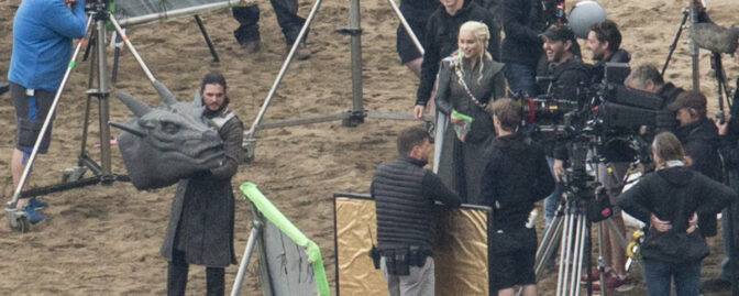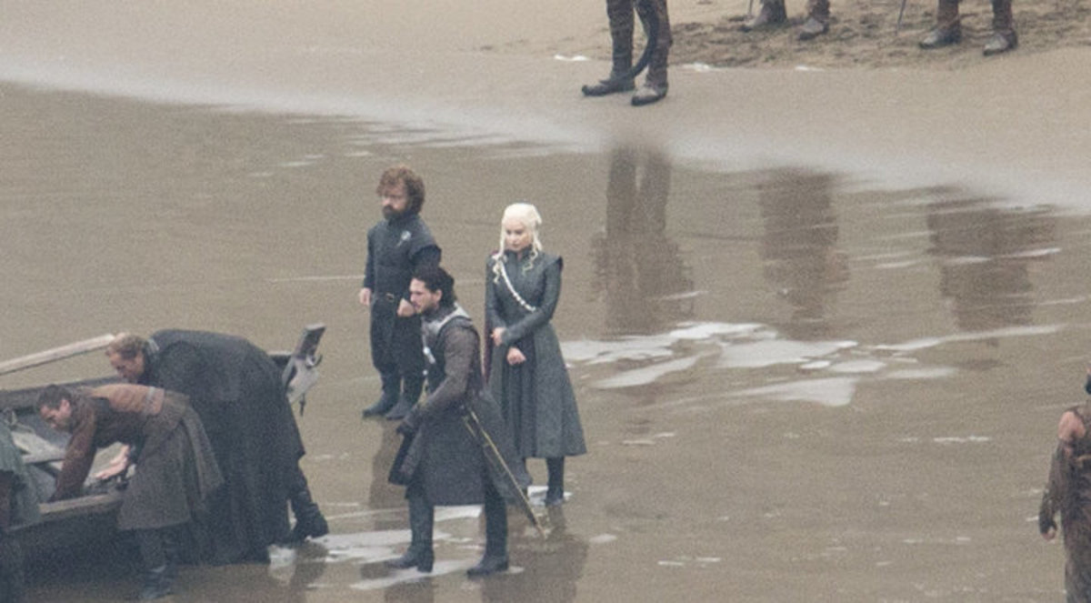 Om Harington inte i själva verket fejkar att läckorna var fejkade – för att vi som anser oss spoilade ska bli mer nyfikna på säsongen – är det inte längre givet att Jon och Daenerys kommer att träffas, som i bilderna. Inte heller att Jon får leka med drakarna. Ärligt talat, vad sysslar han med på bilden?