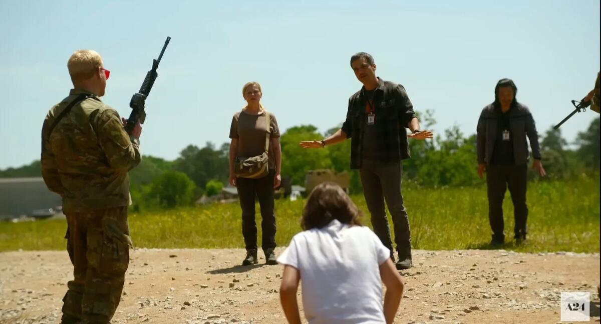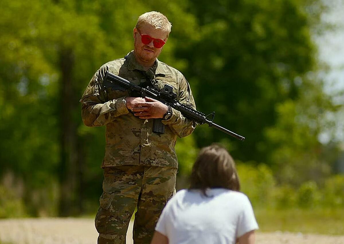 I en intervju med ET Online beskriver hon en av sina ”galnaste” inspelningsdagar. Fun fact: hennes egna make Jesse Plemons dök upp i rollen som skjutglad patriot.
