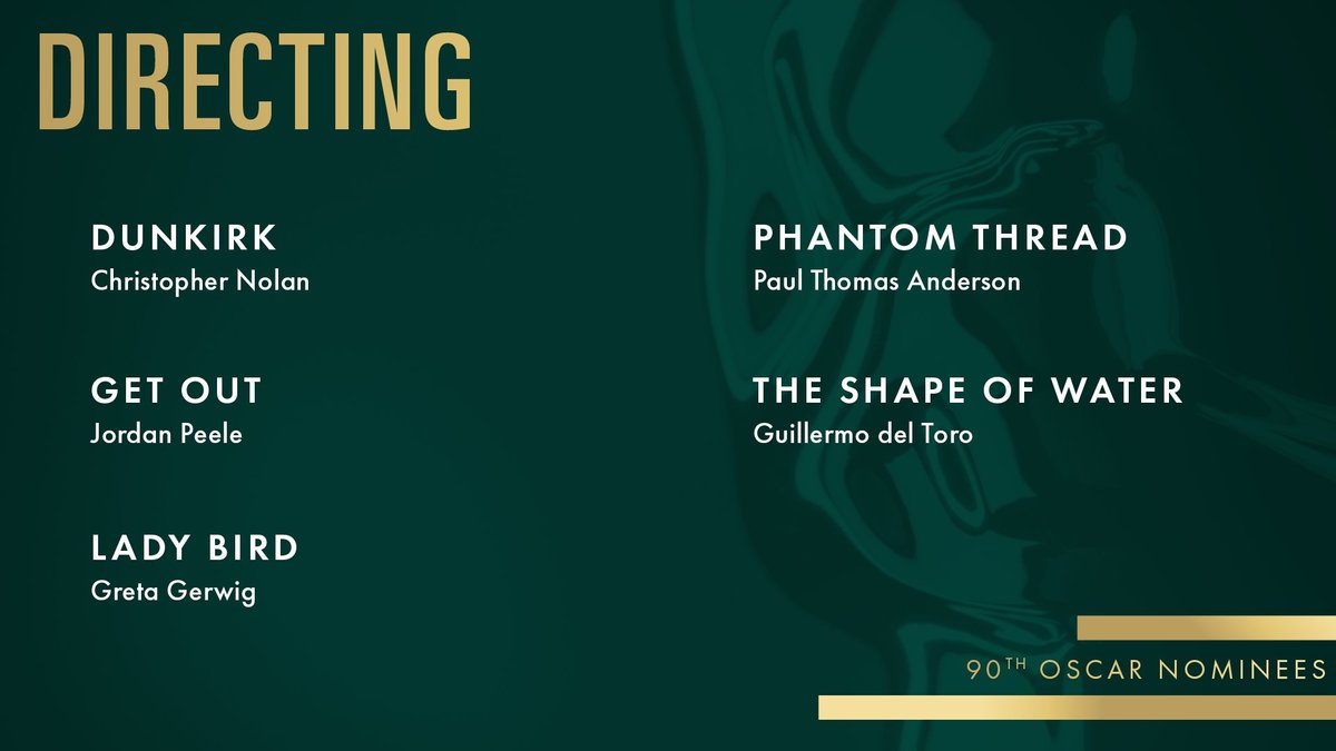 Vem blir årets underdog som ”Moonlight”? Kan en Netflix-film som ”Mudbound” eller en skräckfilm som ”Get Out” ta storslam? Och ska Ruben Östlund få revansch efter Guldbagge-missen och vinna med ”The Square” i Bästa utländska film? Extra kul är också att återigen se en kvinnlig regissör i tävlan – Greta Gerwig med fina ”Lady Bird”. I en kategori där Steven Spielberg för övrigt blev snuvad.