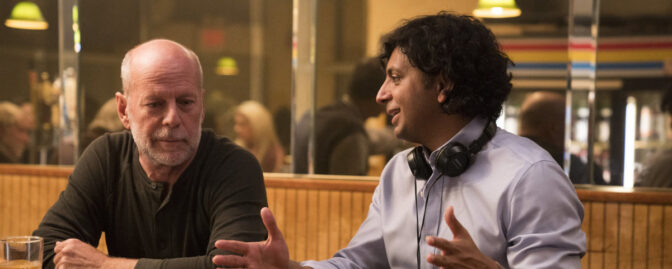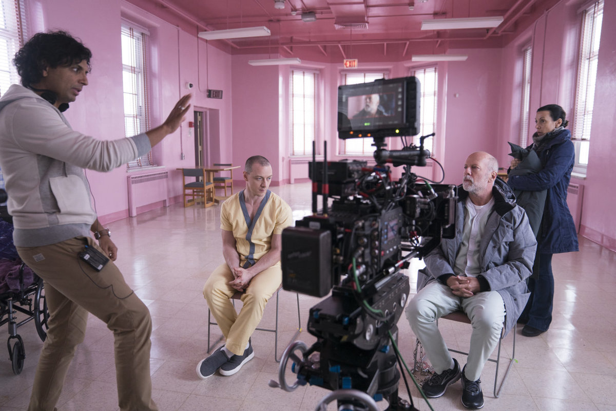 – Jag tror inte att vi pratade öppet om det. Vi koncentrerade oss på att göra ”Split” som en thriller. Fast i slutet av inspelningen började jag tala med honom om det, att vi skulle se om vi kunde göra en film till tillsammans. Bruce kom till premiären på ”Split” och vi smög in honom, för ingen visste ju om att han är med i slutet av filmen. Vi tog en bild på oss tre och jag sa ”killar, ni möts snart”.