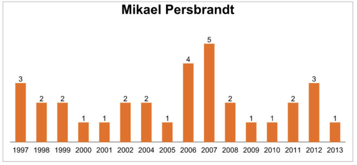 Men detta är långt ifrån alla filmer som Mikael Persbrandt varit med i. Här räknas till exempel inte internationella filmroller som danskproducerade ”Dag och natt”, ”Bang Bang Orangutang” och ”Hämnden”, eller Hobbit-filmerna och ”King Arthur”. Plussa på alla Beck-filmer som gått direkt till dvd, och han har medverkat i runt 70 långfilmer på 20 år. Imponerande!
