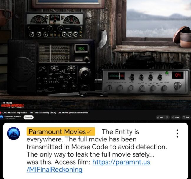 Under onsdagskvällen var jag nog inte den enda som tappade hakan lite grann. På Paramount Pictures Youtube-kanal kunde man hitta en live-sändning som utlovade ”Mission: Impossible – The Final Reckoning – Full Movie”.