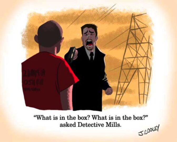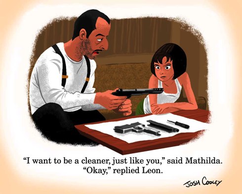 Men han har tagit kända, och i vissa fall legendariska, scener från filmer så som ”Se7en”, ”Terminator 2” och ”2001 – Ett rymdäventyr” och ritat upp dem i sann barnboksanda. En viss åldersgräns kan man nog sätta på böckerna. För hur svarar man på frågan från sitt barn: ”Pappa, vad var det i den där lådan som Mills verkade så upprörd över?”.