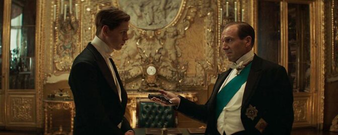 Här ser vi Duke of Oxford (Ralph Fiennes) lära upp Conrad (Harris Dickinson) inför ett krig med mäktige ryssen Rasputin (Rhys Ifans), som planerar att döda miljontals. I rollistan syns också Gemma Arterton, Stanley Tucci och Matthew Goode.