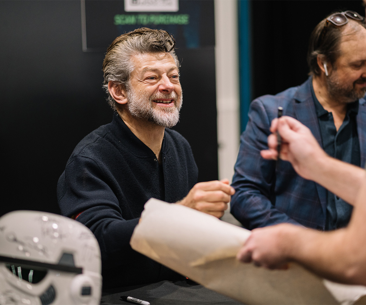 I en sal sitter skådespelare från Star Wars-filmer och serier och säljer autografer och möjligheten att låta sig fotograferas tillsammans med fansen. Priset varierar beroende på vem det är. En bild tillsammans med Ewan McGregor och Hayden Christensen kostar nästan 6000 kronor, medan foto och autograf med Warwick Davis kostar 800. Jag funderar över vart dessa pengar går. Är det skådespelarna som får dom, eller går de till eventets arrangörer? Eller delar man på det? Här finns både idag i det närmaste bortglömda namn som Billy Dee Wiliams, men också sådana som nyss nämnda Ewan McGregor och även Rosario Dawson och Gwendoline Christie.