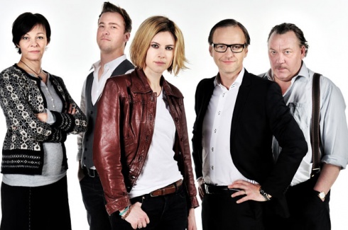 – ”Prime Time” är nummer två. Sen är det ”Studio sex”, ”Den röda vargen”, ”Livstid” och ”En plats i solen”. I den ordningen. I ”Prime Time” är Göran Stangertz, Maria Kulle, Josephine Bornebusch och Moa Gammel med. Vilka de spelar? Det kan jag inte berätta. De kanske dör, de kanske inte dör. De kanske dödar och kanske inte, det får ni se. (skratt)