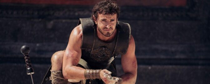 – Filmen handlar om vad människor är villiga att göra för att överleva, men också för att vinna. Vi ser det i arenan men också i det politiska maktspelet som pågår utanför min rollfigurs berättelse. Var finns utrymmet för medmänsklighet? För kärlek och familjeband? Och kan de sakerna övervinna girighet och makt? De står ofta i konflikt med varann, berättar Mescal om filmens teman.