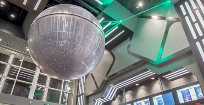 – Idén bakom lobbyn är att vi ville konstruera en lobby med ett tema som skulle göra oss unika på Omaha-marknaden och i hela mellanvästern. Vi ville också ha ett tema som var byggt runt en ikonisk film för att på så sätt kunna fördjupa upplevelsen för besökarna. Det var så ”Star Wars” kom in i bilden och sedan av en slump offentliggjordes planer på en enorm ”Star Wars”-satsning med start i december. Det är en permanent installation och biografen kommer att vara den bästa platsen för att se alla nya ”Star Wars”-filmer.